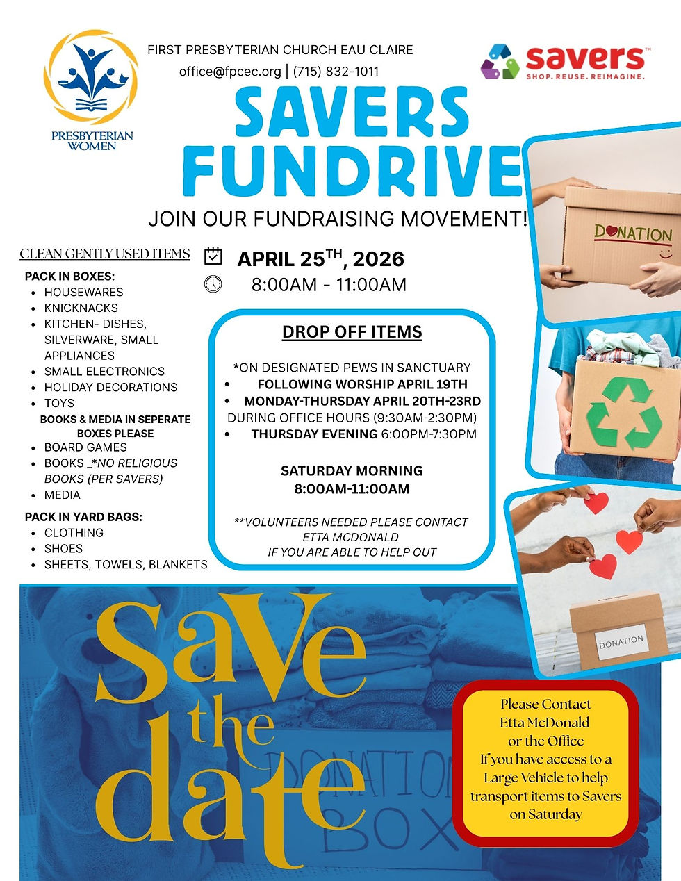 Clean out your closets for First Presbyterian Church